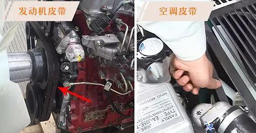 發(fā)動機配備有發(fā)電機風扇及空調(diào)皮帶,所以要檢查這些挖掘機配件是否磨損以及是否有足夠的張緊度來維持其佳性能。檢查皮帶松緊度時,用大拇指按下皮帶的中部,其距離如果在以下表范圍內(nèi)則屬正常(1N=0.102KG)。張力不足時,皮帶易打滑。張力過大時,易損傷各軸承。